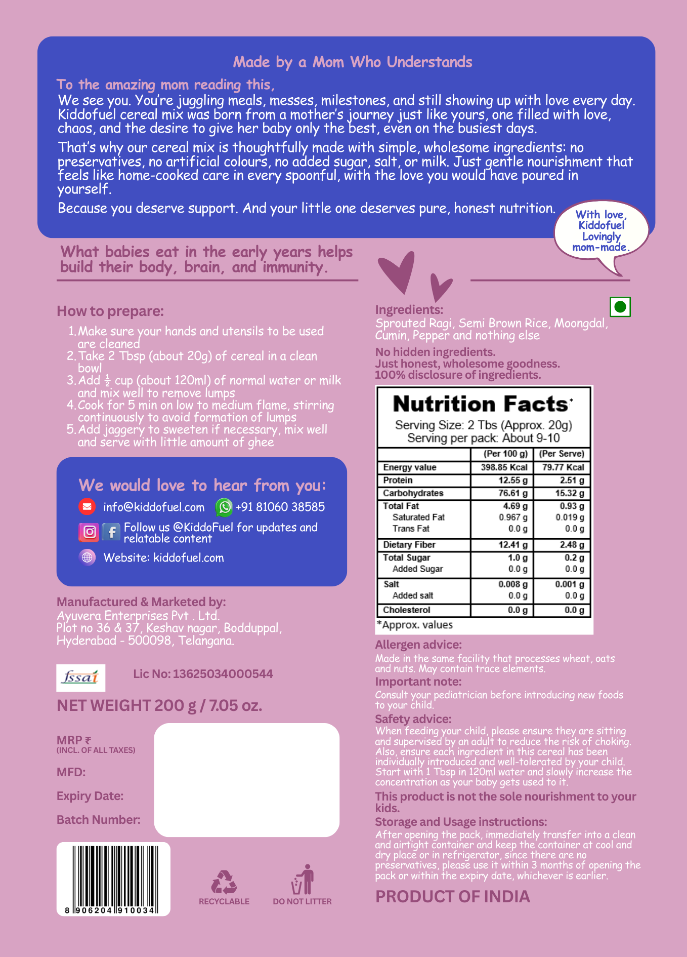 - Take 2 tablespoons of Kiddo Fuel Ragi Rice Moongdal Cereal